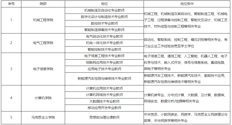 4.專(zhuān)任教師崗具有碩士及以上學(xué)位;具有高校教學(xué)經(jīng)驗、中級以上專(zhuān)業(yè)技術(shù)職務(wù)或行業(yè)企業(yè)工作經(jīng)驗,條件可放寬至學(xué)士學(xué)位;