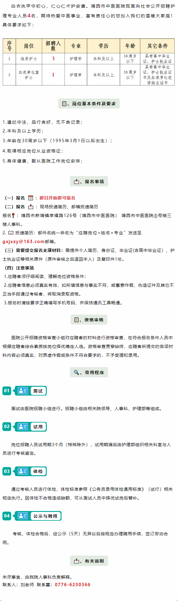 原文標題:靖西市中醫醫院2025年護理人才(第二批)招聘來(lái)啦