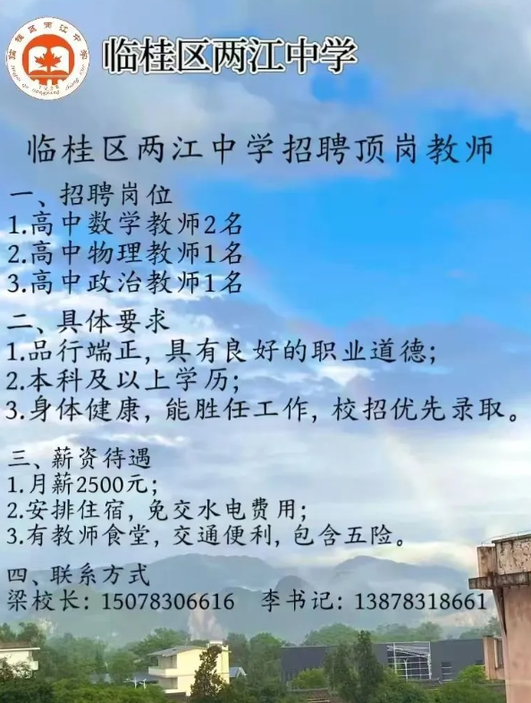 2025年桂林市臨桂區兩江中學(xué)招聘頂崗教師4人