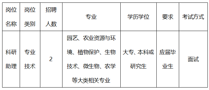 4.已獲得園藝、農業(yè)資源與環(huán)境、植物保護、生物技術(shù)、微生物、農學(xué)等相關(guān)專(zhuān)業(yè)大專(zhuān)、本科或研究生畢業(yè)證書(shū)(要求應屆畢業(yè)生);