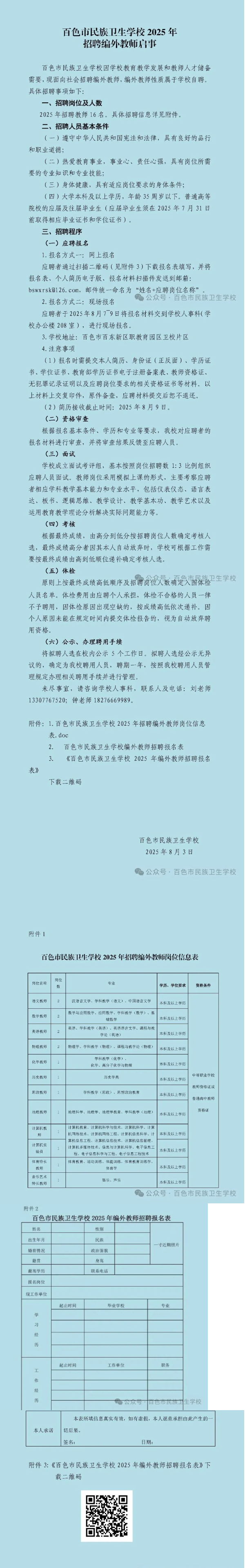 2025年百色市民族衛生學(xué)校招聘編外教師16人