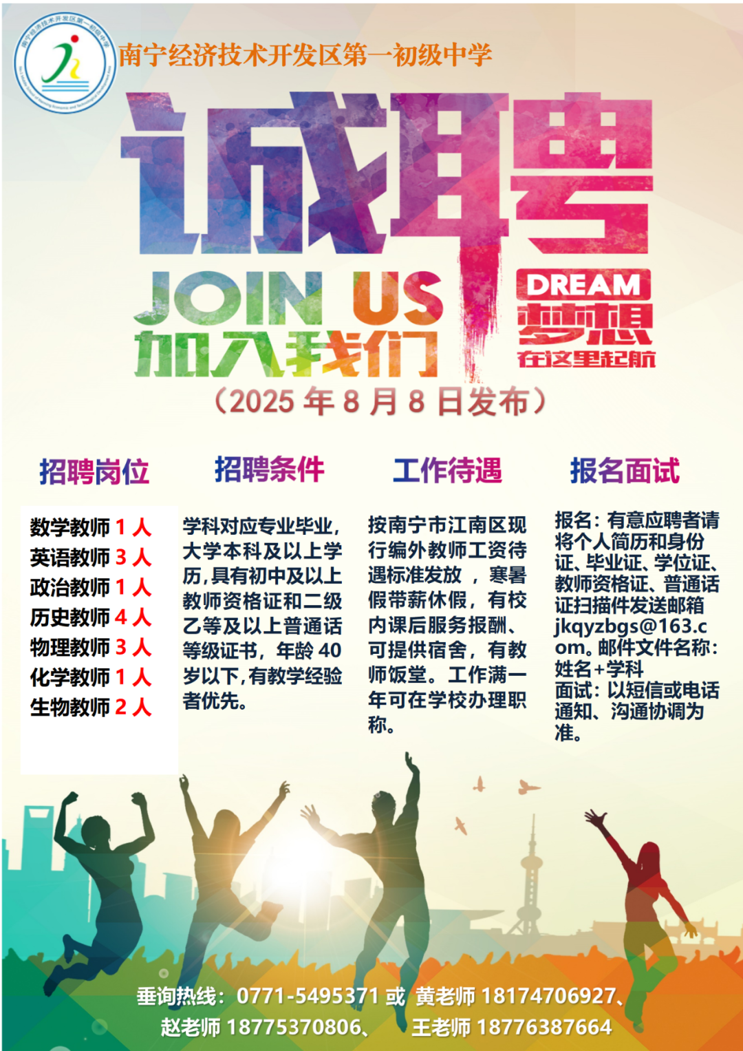 2025年秋季學(xué)期南寧經(jīng)濟技術(shù)開(kāi)發(fā)區第一初級中學(xué)公開(kāi)招聘編外教師15人