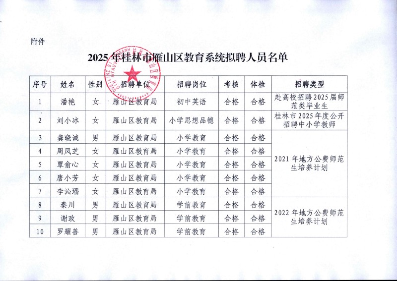 原文標題:2025年桂林市雁山區教育系統擬聘人員名單公示