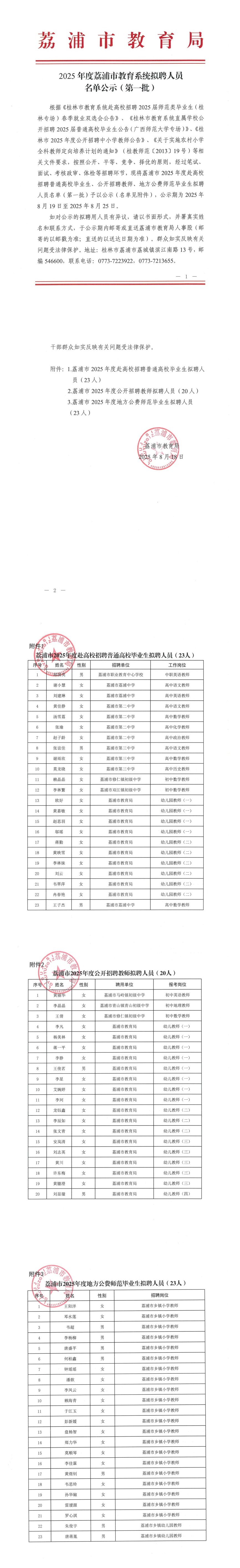2025年度荔浦市教育系統擬聘人員名單公示(第一批)