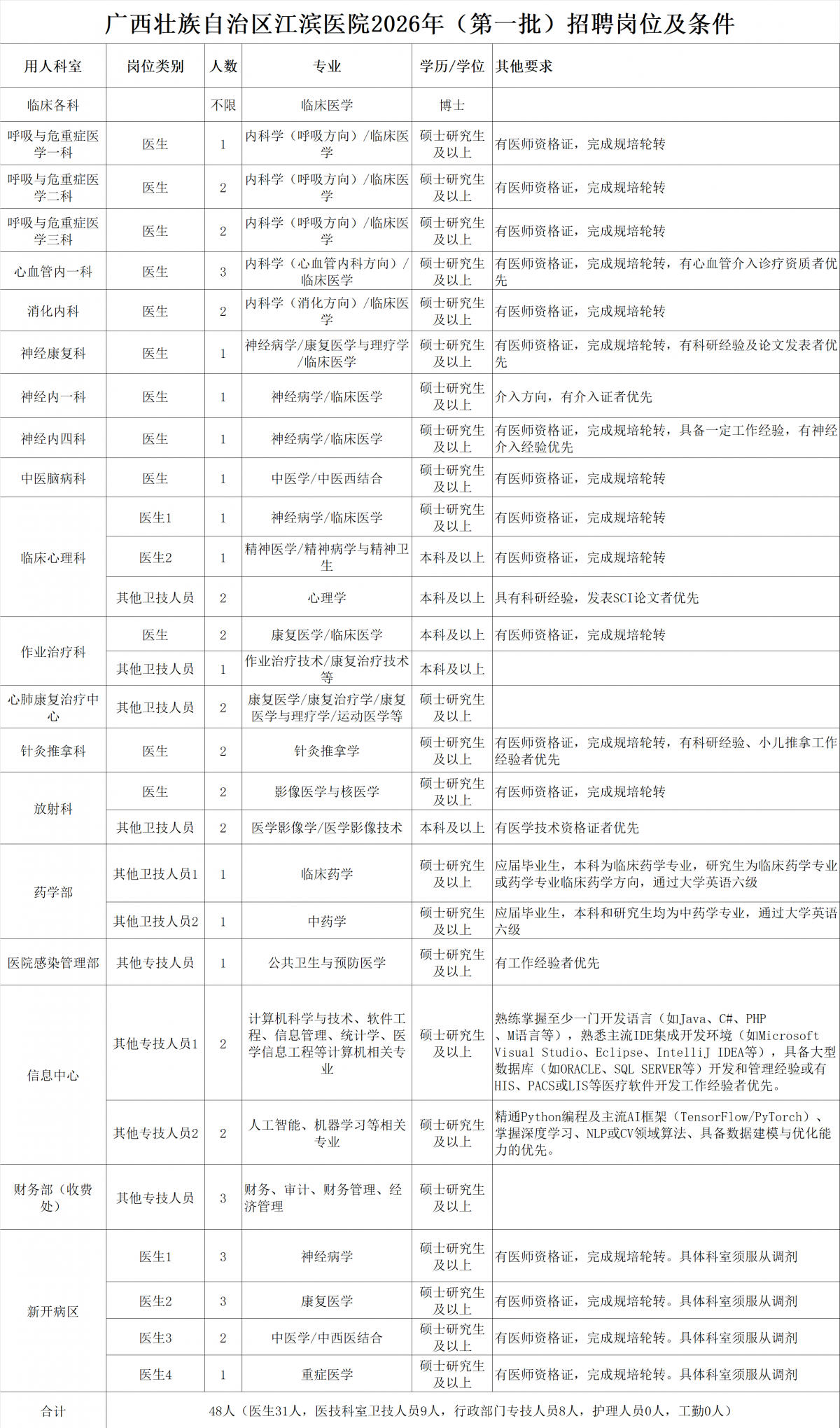 1.《廣西壯族自治區江濱醫院招聘報名表》;