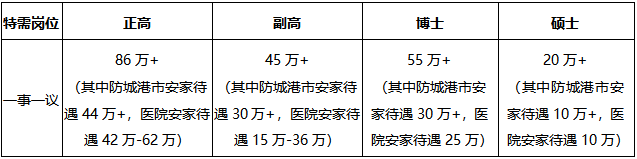 醫院為符合醫院及防城港市引進(jìn)政策的人才給予人才激勵:待遇如下(稅前):